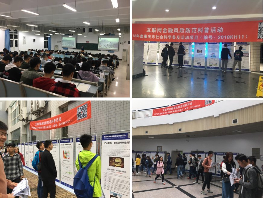 当前位置: 首页 >> 学工新闻 >> 正文 我校举办大学生互联网金融风险防范宣传教育系列活动 时间:2018年11月01日 16:13 作者: 近年来,伴随着我国互联网金融的快速发展,网络借贷、消费金融等互联网金融模式迅速进入高校。各类花样翻新的“校园贷”“裸贷”“美容贷”“求职贷”“培训贷”“创业贷”“回租贷”等非法业务,在高校内层出不穷、乱象丛生,由于大学生涉世不深,风险意识淡薄,致使大学生自杀、自残、抑郁、退学等事件频发。 为教育引导大学生树立正确的消费观念,加大校园互联网金融险防范力度,2018年9月至10月间,由党委学工部牵头,协调通识学院、保卫处、江北校区管委会等相关部门,邀请法学院张忠民教授结合其主持的2018年度重庆市社会科学普及活动项目(编号:2018KH11)的机会,通过讲座、展览、咨询等形式,在全校范围内开展了互联网金融风险防范宣传教育系列活动。活动期间,张忠民教授在南岸校区(含兰花湖片区)、江北校区共计开展讲座7场、展览6场、现场咨询13场,直接受众学生近2000人。系列活动结合现实中的鲜活案例,通过图文并茂、感染力强的PPT、展板和宣传单,向同学们解读了网络借贷、消费金融、网络支付、虚拟货币、股权众筹等互联网金融类型的法律风险及其防范措施;同时,还向同学们介绍了防范个人信息泄露和维护个人征信记录的具体措施。 通过互联网金融风险防范系列活动,让我校大学生特别是大一新生了解了互联网金融风险特征、形态和识别方法,增强了同学们的互联网金融风险防范意识和防范能力,提高了同学们的金融法律素养,引导了同学们树立正确的消费观、理财观和征信观。 上一条:落实“四个回归”,打造“五商并举”的“六好”商界精英——学校举办第三十期辅导员沙龙 下一条:ok138cn太阳集团成功举办2018国家资助政策宣传大使“三进”活动 【关闭】