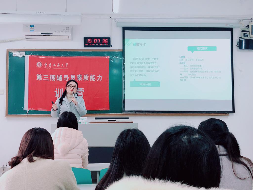 当前位置: 首页 >> 学工新闻 >> 正文 【辅导员训练营第三期】公文写作小组第一次活动顺利开展 时间:2018年11月30日 10:19 作者: 11日22日下午15:00,重庆工商大学第三期辅导员职业能力提升训练营之公文写作小组第一次活动在博智楼7111教室顺利举办,吸引我校20余名辅导员参加。活动由计信学院李菁老师主持。 本次活动围绕“学生工作实用公文写作”的主题,以学习分享会的形式展开。活动前,通过小组线上参与投票,选出了辅导员“实际工作中想要了解、学习的公文文种”,得票最高的“函”、“简报”、“请示”三种公文被选为本次学习分享的内容。 分享会上,来自通识学院的梅艺老师从公文应用范围、写作格式及要求、案例分析三个层面对“函”、“简报”、“请示”进行了介绍与分享。在案例分析环节,梅艺老师列举了“跨学院组织学生活动”、“学生党支部学生党员支委毕业离校,支委空缺”等学生工作涉及的情景作为案例背景,生动形象地对照分析了《计信学院关于组织2018级通识学院电子专业学生参加专业学术讲座的函》、《学生党支部增补支委的请示》、《辅导员沙龙简报》,让公文写作更接地气。 随后,与会辅导员老师进行自由发言,交流公文写作学习心得,分享应用中的困惑。最后,分享会在各位辅导员老师的掌声中落下帷幕。 上一条:【辅导员训练营第三期】谈心谈话小组第一次活动顺利开展 下一条:【辅导员训练营第三期】案例分析小组第一次活动顺利开展 【关闭】