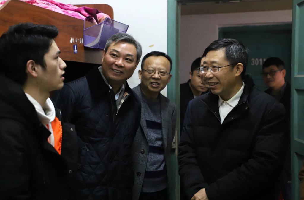 当前位置: 首页 >> 学工新闻 >> 正文 市委教育工委专职副书记覃正杰一行来我校看望慰问留校学生 时间:2019年01月30日 11:38 作者: 1月29日,市委教育工委专职副书记覃正杰、学生处处长刘宏伟等一行走访慰问我校部分学生,为留校学生送去关心和祝福。 上午10时,覃正杰副书记一行人先后来到北区宿舍三栋3010男生寝室和北区宿舍六栋2008女生寝室亲切看望留校学生。覃书记逐一听取同学们汇报寒假期间的收获,亲切地与同学们拉起了家常,讲了他读书时代也在假期积极参与社会实践培养努力。在听完每个同学的发言后,覃正杰副书记鼓励大家在大学期间要按照习总书记在全国教育大会上讲话要求,要德智体美劳全面发展。他表示,要把立德树人放在首位,“德”不仅仅是品德,它还是世界观、人生观和价值观的综合体现,它是大学生发展的总开关;“智”字是上面为知识,下面是每天学习,还要把知识转化为做事的能力,是做成事的智慧;“体”是要有健全的体魄,要养成锻炼身体的习惯,把体育锻炼当作快乐的事情;“美”是要提升大家的审美素养,中国传统文化博大精深,大学生要在文化中陶冶审美情操;“劳”是要热爱劳动,要尊重劳动成果和劳动者。“幸福不会从天将,美好生活靠劳动创造”。大学生要“懂得劳动最光荣、劳动最崇高、劳动最伟大、劳动最美丽的道理”。他还鼓励大学生要如习总书记所说“扣好人生第一粒扣子”,全面发展,做社会主义合格接班人。 最后,覃正杰副书记一行向我校部分留校学生赠送了新春大礼包等慰问品并与大家合影。我校李国军副校长以及党政办、财务处和学工部学生处负责人的陪同走访了留校学生。 上一条:【辅导员训练营第三期】 学校举办第五届辅导员素质能力大赛之“基础知识测试”比赛 下一条:我校举行2019年留校学生代表新春团拜会 【关闭】