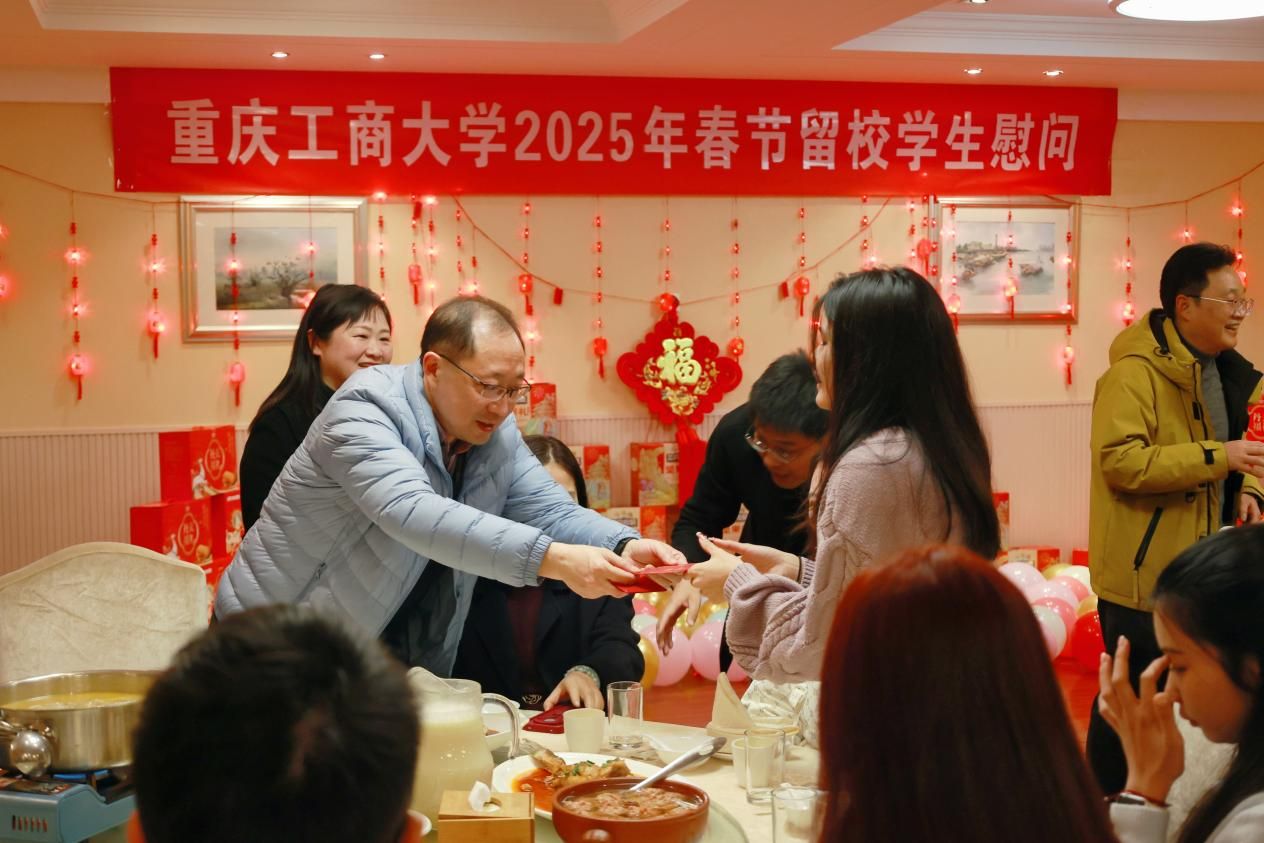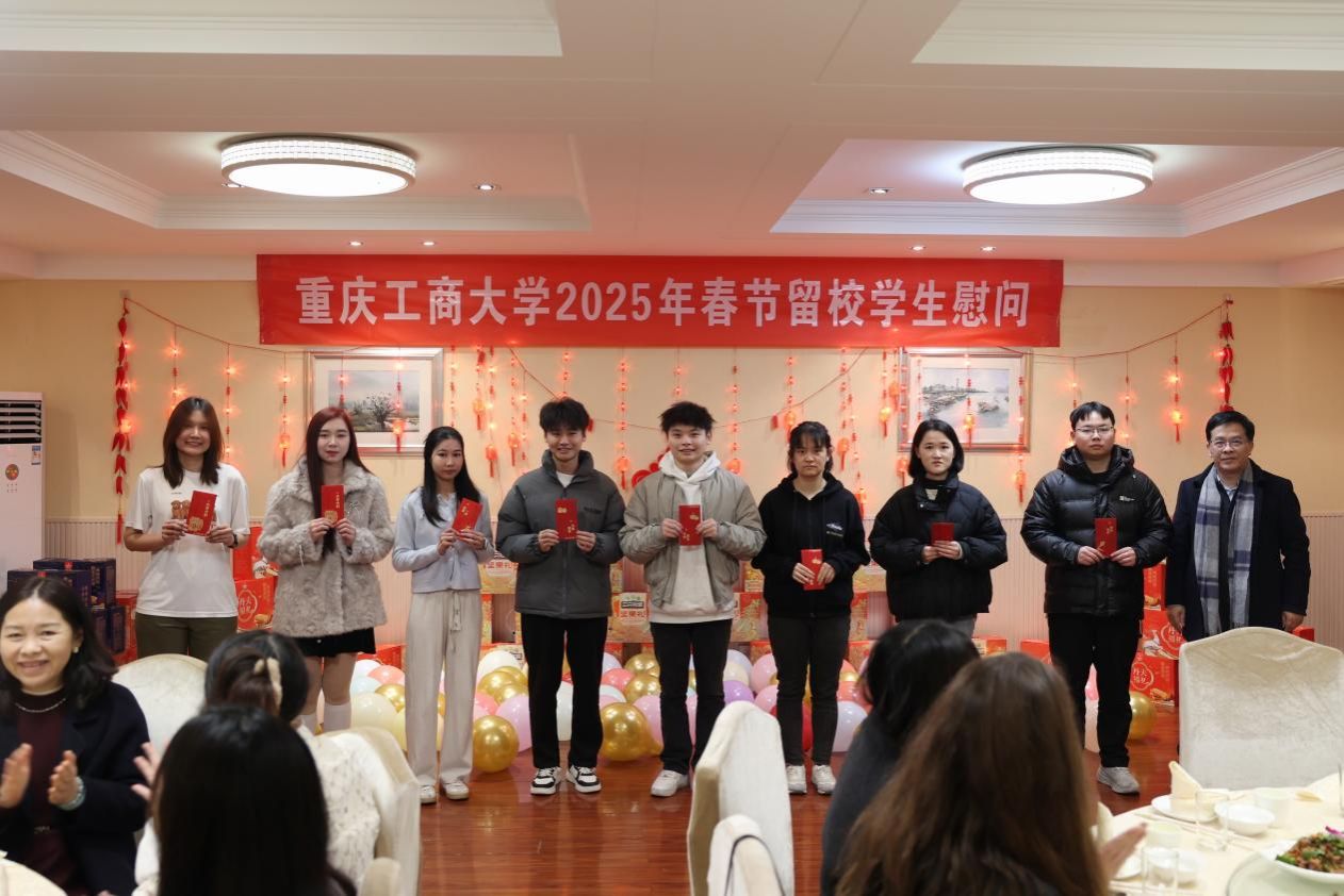 当前位置: 首页 >> 学工新闻 >> 正文 学校开展2025年寒假留校学生系列慰问活动 时间:2025年01月23日 15:53 作者: 陈洁 蒋梦宇 刘红 学校开展2025年寒假留校学生系列慰问活动 文/陈洁 蒋梦宇 刘红 图/邓艺 徐宇 银蛇舞动迎新春,瑞凤展翅送吉祥。1月23日上午,重庆市委教育工委委员、市教委副主任蒋云芳、重庆市教委学生处处长杨琴一行到校看望慰问寒假期间留校学生。学校校长温涛,党委常委、副校长李国军及相关职能部门负责人参加,慰问活动在厚德楼3019会议室举行。 蒋云芳代表重庆市教委向留校学生致以亲切问候和新春祝福,她详细询问了同学们留校期间的学习生活、实习实践等情况。希望大家假期注意安全,合理安排,在学校度过一个平安祥和、欢乐充实的新春假期。与会领导与留校学生亲切交谈,并为同学们送上了慰问金。 温涛代表学校对市教委慰问我校寒假留校学生表示感谢,学校将为学生提供全方位服务保障,努力营造喜庆温馨的新春氛围。 中午,学校举行2025年留校学生新春慰问团拜会,学校党委书记曾维伦,党委常委、副校长张波、李国军和相关职能部门负责人与学生欢聚一堂。团拜会由李国军主持。 现场张灯结彩、热闹喜庆、其乐融融。一声声新春的问候如同春风拂面,传递着无尽的温暖和关怀。吉祥的“福”字、喜庆的拉花、火红的中国结……无不洋溢着欢乐祥和的节日气氛。 曾维伦向师生们致以新春祝福。他谈到,2024年在全校师生共同努力下,学校取得了优异的成绩,成功获批博士学位授予单位,一次性获批应用经济学、统计学、工商管理学3个一级学科博士学位授权点;圆满完成了本科教育教学审核评估。通过大战大考,充分调动了全校师生的积极性,振奋了精气神!回顾过去一年,全校团结奋进的发展历程,学校的未来将更加光辉。他希望全校师生在新的一年里努力拼搏、实现梦想、再创辉煌! 校领导为留校学子们发放了新春大礼包和春节慰问金,并与学生共进午餐,亲切交谈。同学们纷纷表示,在学校过春节是一份独特的记忆,让我们感受到了浓浓的年味儿,感谢学校的关心关怀、服务保障,让我们体会到家一样的幸福和温暖。 据悉,今年寒假,学校共有400余名学生因备战考研、实习等原因留校。学校各相关部门将积极做好留校学生的服务与管理工作,及时解决学生困难,共度欢乐祥和的新春佳节。 上一条:学校举行“开学第一课”主题升旗仪式 下一条:机关学工部党支部圆满完成换届选举工作 【关闭】