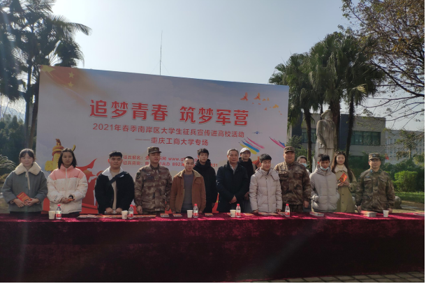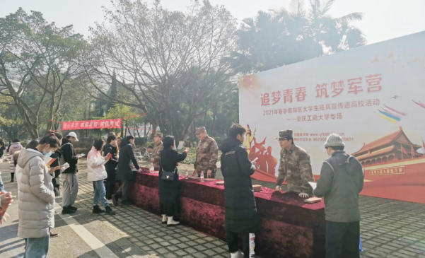 当前位置: 首页 >> 国防教育 >> 大学生应征入伍 >> 正文 南岸区人武部到我校开展征兵宣传进校园活动 时间:2021年01月12日 17:25 作者: 周良勇 为增进学生们对征兵政策的了解,激发他们参军报国的热情,切实做好首次春季征兵工作,1月12日上午,我校邀请南岸区人武部以“追梦青春·筑梦军营”为主题开展征兵宣传进校园活动。区委常委、人武部部长王军同志,校党委常委、副校长李国军同志,区征兵办和校征兵工作站相关同志参加了此次宣传活动。 此次宣传活动通过设置展板、发放征兵宣传手册以及现场咨询等方式进行,区人武部领导亲自向学生们详细介绍了征兵条件、报名方法及相关优待政策,吸引了许多学生驻足聆听和咨询,现场气氛热烈、反响强烈。 上一条:我校举行2021年春季应征入伍学生欢送仪式 下一条:2021年春季征兵公告 【关闭】