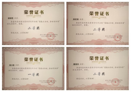 当前位置: 首页 >> 社区建设 >> 楼栋管理委员会 >> 正文 环境与资源学院楼管会开展“青春正当时,劳动写华章”主题征文比赛 时间:2024年05月29日 10:42 作者: 环境与资源学院南13B、南13C、北23楼管会 为深入学习贯彻《中共中央国务院关于全面加强新时代大中小学劳动教育的意见》,2024年3月,环境与资源学院南13B、南13C、北23楼管会联合开展了“一站式”学生社区“青春正当时,劳动写华章”主题征文比赛。此次活动旨在营造热爱劳动、尊重劳动的校园氛围,让学生从劳动实践中获得感悟,进一步强化劳动最光荣、劳动最崇高、劳动最伟大、劳动最美丽的理念,培养学生争做青春的奋斗者、实干者。 本次征文活动吸引了全院百余名同学参赛,同学们通过线上报名提交作品,涵盖诗歌、散文、随笔等多种文体,大家围绕“青春正当时,劳动写华章”主旋律,表达了自己对劳动意义的理解,真实展现了同学们对劳动实践的热爱、对劳动成果的尊重。 本次征文共评选出一等奖1名,二等奖3名,三等奖6名。22化工雷小毅同学在其作品《颂劳动之歌》中,通过诗歌的形式歌颂伟大的劳动人民,采用细腻的笔触描绘了广大劳动人民日复一日辛勤劳作的场景,展现了劳动者不畏艰险、披荆斩棘的精神风貌。23化制梁瑞雪同学在其作品《擎劳动之笔,绘青春之美》中,通过歌颂劳动者的个人事迹,展现了劳动者对劳动的热爱和对生活的坚守与希望,呼吁青年学生应当始终坚持冲锋在前,将青春融入中华民族伟大复兴的建设当中。 本次主题征文比赛激励着每一位参与者深入思考劳动的意义,倾听时代的声音,感受劳动的力量。同学们认识到,劳动不单是生存的手段,更是一种美德和一种实现自我价值的途径,为同学们成长成才打下了坚实基础。 活动评审现场 部分获奖同学奖状 上一条:金融学院楼管会联合党员服务站开展宿舍安全教育主题活动 下一条:南16A3楼管会开展“固安全之基,展平安未来” 汇演活动 【关闭】