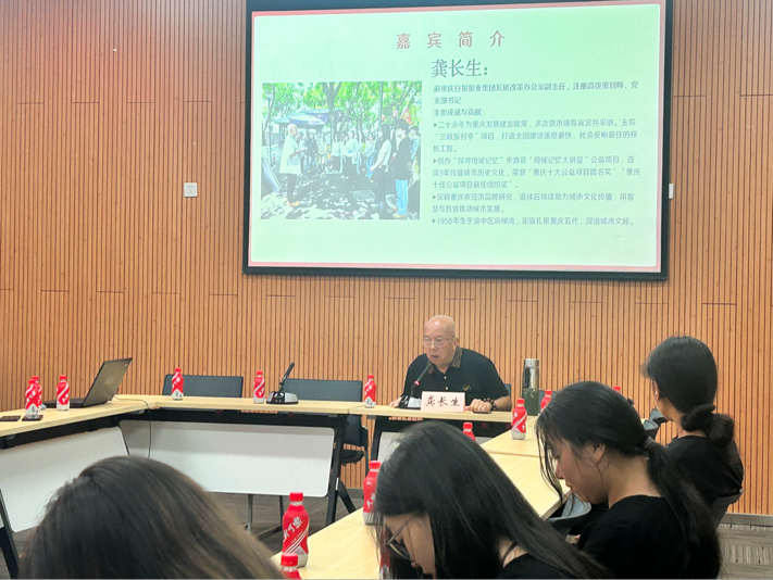 当前位置: 首页 >> 社区建设 >> 楼栋管理委员会 >> 正文 工商管理学院楼管会举办“对话五老:‘解码岁月初心,点燃青春火炬’”主题讲座活动 时间:2025年05月22日 12:07 作者: 工商管理学院北2、北5、北14、南8楼管会 5月21日,为深入推进“一站式”学生社区建设,创新社区思政教育形式,工商管理学院北2、北5、北14、南8楼管会联合学院关工委在图书馆会议中心二会议室成功举办“对话五老:‘解码岁月初心,点燃青春火炬’”主题讲座活动。本次活动吸引了全校50余名师生的热情参与。 活动特邀老党员龚长生作为主讲嘉宾。龚长生是原重庆日报报业集团发展改革办公室副主任兼党支部书记,曾参加自卫反击战并幸存,现为重庆市文化和旅游发展研究会副会长、重庆母城文化宣传推广发起人。他长期致力于重庆历史文化保护与传播,发起“探寻母城记忆”等多项公益活动,获得“重庆十佳公益项目”等荣誉。 活动伊始,工商管理学院学工办主任谭予涵为龚长生授予“大学生传承弘扬城市精神科普基地”荣誉牌,以感谢他对红色文化传播的贡献。讲座分享过程中,龚老以亲身经历讲述党的奋斗历程,从知青岁月到军旅生涯,从战场故事到建设历程,生动诠释共产党人的初心使命。通过一个个鲜活的历史片段,将红色记忆娓娓道来,为青年学子带来一堂生动的红色思政课。活动现场气氛热烈,龚老“脚踏实地做事,心怀家国做人”的寄语引发强烈共鸣。 本次活动创新性地将红色教育融入“一站式”社区文化建设,通过老一辈革命者的生动讲述,让同学们深入了解党的历史,感悟红色文化的深刻内涵,引导学生树立正确世界观、人生观、价值观,增强社会责任感和历史使命感。同时通过代际对话实现红色基因的薪火相传,促进青年一代和老一辈革命者的之间的交流,为“一站式”社区建设注入精神动力。 上一条:会计学院楼管会举办“艾香传古韵,粽情绘新章”端午非遗体验活动 下一条:以创意赋能环保,以实践深化育人——南16A1楼栋开展旧物改造活动 【关闭】