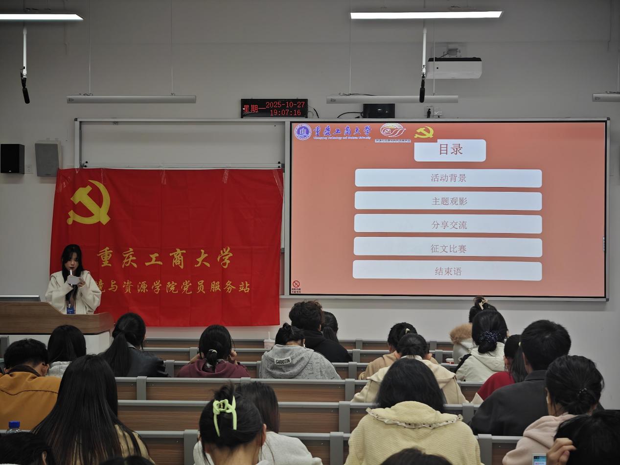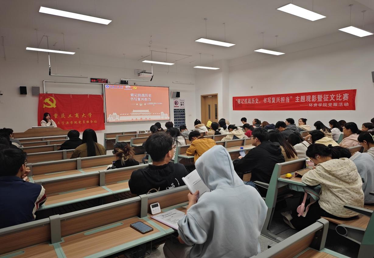 当前位置: 首页 >> 社区建设 >> 党员服务站 >> 正文 环境与资源学院党员服务站举办“铭记抗战历史,书写复兴担当”主题活动 时间:2025年10月28日 16:29 作者: 环境与资源学院党员服务站 2025年10月27日,由环境与资源学院党员服务站主办的“铭记抗战历史,书写复兴担当”主题活动,在我校茶园校区宏智楼222教室顺利开展。 本次活动通过组织观看志愿军主题影片,引导同学们重温抗美援朝战争的艰苦卓绝与志愿军战士的英勇无畏,深切缅怀为国家和民族牺牲的革命先烈,激励青年学子传承红色基因,赓续精神血脉。影片《志愿军:存亡之战》生动展现了志愿军战士不畏强敌、敢于斗争的英雄气概,使同学们在沉浸式观影中深刻体悟伟大抗美援朝精神的时代价值,进一步坚定了爱国信念与使命担当。 活动伊始,主持人围绕活动主题介绍了背景意义与流程安排。随后,全体同学共同观看影片,现场气氛庄重而热烈。影片情节感人至深,不少同学深受触动。观影结束后,大家踊跃分享心得体会,交流对历史与责任的思考。主持人随后介绍了主题征文的具体要求和提交方式,并设置了答疑环节。活动最后在主持人的总结与全体合影中圆满落幕。 十四年烽火征程,警钟长鸣;民族精神薪火相传,复兴在望。通过此次主题活动,同学们更加深刻地认识到,今天的和平与繁荣来之不易,是无数先烈用鲜血与生命铸就。大家纷纷表示,将不忘历史、勇担使命,把爱国情、强国志、报国行融入新时代的奋斗进程中,以青春之我书写民族复兴的崭新篇章。 上一条:融媒时代,“职”为你来——文学与新闻学院成功举办2026届毕业生模拟招聘大赛 下一条:外国语学院党员服务站举办“爱在金秋,情暖重阳”慰问老人活动 【关闭】