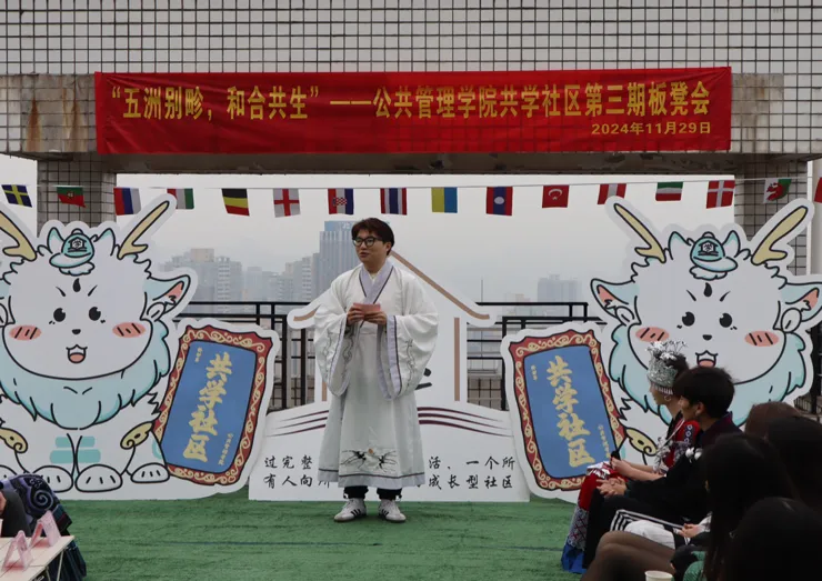 当前位置: 首页 >> 社区建设 >> 社区风采 >> 正文 公共管理学院共学社区举办“五洲别畛,和合共生”第三期板凳会 时间:2024年12月02日 16:31 作者: 公共管理学院 青年是时代最激昂的力量,是时代最明丽的色彩,为积极响应国家文化强国建设号召,激发青年文化创新活力,2024年11月29日,ok138cn太阳集团公共管理学院共学社区成功举办“五洲别畛,和合共生”第三期板凳会,学院领导、辅导员与50余名学子共赴这场文化交流盛宴。 活动开场,主持人焦焱琦热忱欢迎到场嘉宾,点明以“共学”弘扬文化之美、培育新时代青年的主题。民族文化展示环节率先启幕,苗族学生杨雪梅携精美刺绣登场,其外婆绣品针脚细密,工艺精湛令人称奇。李成竹与刘强的彝族歌曲宛转悠扬、振奋人心,仡佬族范冰冰推介家乡小吃“黄水耙”并带给在场观众品尝,美妙的口感赢得众人赞誉。多样的民族文化以不同形式展现在观众眼前,如瑰宝般绚烂夺目,使大家无不领略其风采。 留学分享环节,泰国留学生侯诗青分享中泰两国在多方面的紧密联系与中方给予泰国的宝贵援助;老挝留学生王曼妮热情介绍自己的城市,盛邀众人游历家乡;乌克兰留学生琳娜畅谈文化差异,感怀中国热情好客与文化魅力。自由交流环节时,如何提升中华文化国际认同成为焦点话题,思想碰撞火花四溅。 最后的“‘语’你相遇”环节更是妙趣横生,邀请留学生代表及中国不同地域的同学,他们尽情使用家乡话吐露对学校、重庆及中国的热爱,乡音各异却情感共通,观众们全神贯注,认真聆听着每一个音节的微妙差异,跟读模仿热潮涌动,文化多元魅力尽显。 活动尾声,公共管理学院党委书记陆嘉温情致辞,高度评价活动搭建跨国域文化桥梁意义非凡,助学子深度交流、相知相融,拓宽全球视野,厚植跨文化交流能力。此次板凳会为文化对话与交融筑牢平台,涵养学子文化自信,激发传承创新使命感。未来,青年学子定将秉持时代担当,为文化繁荣注入澎湃青春动能,续写辉煌篇章,在全球文化舞台彰显中华魅力与青春智慧,让文化薪火相传、熠熠生辉。 上一条:ok138cn太阳集团举行学生公寓物业管理优秀个人表彰会 下一条:ok138cn太阳集团党委常委、副校长李国军深入学生社区调研指导工作 【关闭】