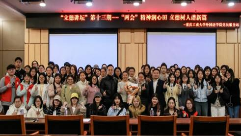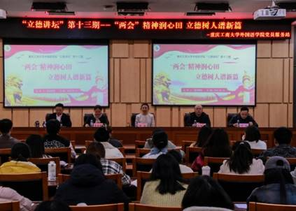 当前位置: 首页 >> 社区建设 >> 社区风采 >> 正文 ”两会”精神润心田,外语学子话担当 ——ok138cn太阳集团举办第十三期“立德讲坛” 时间:2025年03月17日 11:48 作者: 外国语学院 为深入学习全国“两会”精神,引导广大党员和青年学生深刻领会“两个确立”的决定性意义,增强“四个意识”、坚定“四个自信”、做到“两个维护”。 3月14日下午,外国语学院在南岸校区新图书馆第一会议室成功举办了第十三期“立德讲坛”。本次“立德讲坛”特邀主讲嘉宾为安徽工业大学马克思主义学院院长郑洁教授,主讲的题目为 “两会”精神润心田,立德树人谱新篇。校党委学工部副部长杨徐勇、党委宣传部思政科科长邓艺以及外国语学院党委副书记吴欢欢,以及外国语学院全体党员、入党积极分子和学生干部等100余名师生参加了本次讲座。 杨徐勇强调了全国“两会”精神对于广大新时代青年学生的重要意义,鼓励同学们将语言能力与国家需求深度融合,以“外语+”的复合型能力,在构建人类命运共同体、助力高质量发展的征程中贡献智慧与力量。郑洁教授围绕“两会”精神进行宣讲。郑教授深入浅出地解读了2025年全国两会的重要内容,并从政府工作报告、“两会”新词、热词等方面,做了详细讲解,她通过生动的案例和详实的数据,引导同学们深刻了解世界格局和国内形势,激励广大同学应努力学好专业知识,提升跨文化交际能力,讲好中国故事,传播中国声音,成为中外文化交流的桥梁和纽带。 共识在学习中凝聚,思想在碰撞中升华。讲座结束后,同学们纷纷表示,应该积极关注国家发展,将个人理想融入国家发展大局。22英语一班程麟表示:特别关注全国两会热词中的民生保障、科教人才和青年发展等主题,特别期待两会为我们的未来描绘更清晰的蓝图。作为一名青年学生党员,将以实际行动响应两会精神,坚持不懈用习近平新时代中国特色社会主义思想凝心铸魂,为中华民族伟大复兴贡献力量! 外国语学院 “立德讲坛”品牌活动至今已经开展了十三期,始终以爱国主义教育为核心,把弘扬好马克思主义、中国先进革命文化、中华优秀传统文化等主流意识形态作为主要任务,把学习好、宣传好、贯彻好习近平新时代中国特色社会主义思想作为常态工作,持续加强广大青年学生的思想政治教育,努力在“一站式”社区中探索党建引领新路径,让学生思想和行动都统一到爱党、爱国、爱社会主义中来,做社会主义核心价值观的积极传播者和忠实践行者。 上一条:诗香沐心扉,思政润心田—— 一堂被诗意浸润的思政课讲座 下一条:数学与统计学院举办“复试‘智’胜, ‘研’学成真”系列考研指导交流会 【关闭】