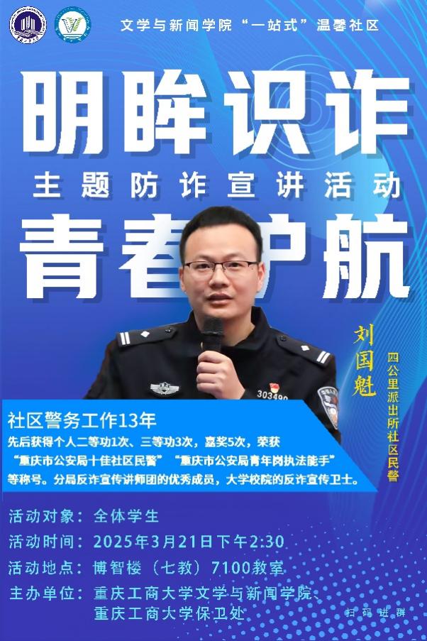 当前位置: 首页 >> 社区建设 >> 社区风采 >> 正文 文学与新闻学院“一站式”温馨社区开展“明眸识诈 青春护航”主题防诈宣讲活动 时间:2025年03月24日 14:20 作者: 文学与新闻学院 为积极响应国家关于加强网络安全教育的政策号召,进一步加强反诈宣传力度,切实增强学生的识骗防骗意识和能力,3月21日,由学工部、保卫处及文学与新闻学院联合主办的“明眸识诈,青春护航”防诈主题讲座于博智楼7100顺利举行。活动特邀四公里派出所民警刘国魁老师作为主讲人,党委学工部副部长杨徐勇到场指导。文学与新闻学院党委副书记程元元,学工办周晋、李琦、张波及“一站式”温馨社区百余名学生共同聆听。 讲座伊始,程元元结合当前网络诈骗手段迭代升级态势,深入剖析了在数字化时代背景下加强防诈教育的必要性和紧迫性,通报了近几年校园涉诈涉骗情况,以警示教育引导青年学子树牢防诈意识,切实提升风险辨识能力与自我保护意识,共同筑牢校园安全防线。 随后,刘国魁警官结合当前高校真实案例,重点剖析刷单返利、虚假交易等典型骗局,通过解析身份信息泄露、诱导转账等常见作案手段,向学生详解防范要点,提出识别话术漏洞、阻断转账风险等实用技巧,为现场师生上了一堂由浅入深的防诈反诈专题课。针对当前学生群体易涉及的网络兼职诈骗、租借电话卡诈骗等灰产陷阱,刘国魁以案释法,警示青年学子切莫因蝇头小利触碰法律红线。刘国魁特别提醒同学们要将反诈知识牢记于心,不仅要自己做好防范,还要积极向身边的人宣传,做到终身反诈防诈,共同为平安校园及和谐社会建设贡献自己的力量。 每一个鲜活的案例背后都是血淋淋的教训,触目惊心的涉案金额与极具迷惑性的技术型诈骗手段引发强烈共鸣。在场师生纷纷踊跃分享遭遇网络红包、快递单扫码等骗局的亲身经历,共说反诈防诈高招妙招。刘国魁耐心、详细解答了学生的疑问,帮助学生更好地理解防诈知识。现场气氛热烈,学生们纷纷表示受益匪浅。 据悉,ok138cn太阳集团文学与新闻学院“一站式”学生社区一贯重视学生反诈宣传教育,通过开展主题班会、发放防诈宣传单等一系列行动,营造学生社区“识诈、反诈”浓厚氛围。同学们纷纷表示,将把学到的反诈知识运用到实际生活中,时刻保持警惕,远离诈骗陷阱。本次反诈宣讲活动进一步加强了“一站式”学生社区的安全文化建设,强化“平安校园”建设内涵,帮助同学们掌握实用的防诈技巧,增强自我保护意识,为青年成长构建有温度、有韧性的守护生态。 上一条:通识学院召开“一站式”学生社区公寓育人工作协同推进会 下一条:机械工程学院举办教学联动交流座谈会 【关闭】
