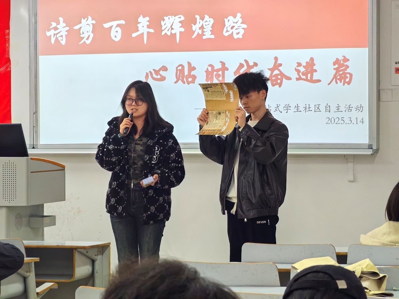 当前位置: 首页 >> 社区建设 >> 社区风采 >> 正文 管理科学与工程学院成功举办“诗剪百年辉煌路·心贴时代奋进篇”拼贴诗活动 时间:2025年03月17日 16:41 作者: 管理科学与工程学院 百年奋斗历程波澜壮阔,中华民族实现了从站起来、富起来到强起来的伟大飞跃,如今正值奋力推进高质量发展的关键阶段,正处在以中国式现代化全面推进强国建设、民族复兴伟业的关键时期,青年学子应明晰自身定位,深挖时代精神,投身中华民族伟大复兴的中国梦的建设,挥洒青春热血。为引领管理科学与工程学院学生深刻感悟党领导人民取得的伟大成就,弘扬爱国主义精神,激发学生的创造力与文化自信,管理科学与工程学院党员服务站于2025年3月14日开展了“诗剪百年辉煌路,心贴时代奋进篇”一站式学生社区拼贴诗活动。 活动现场,同学们观看视频,回顾党的光辉历程以及新时代伟大成就,随后各小组根据活动主题,在30分钟内利用现场提供的拼贴诗材料进行诗词创作,在创作中构建文字,重组诗意,表达情感。 制作完成后,每组代表依次分享了他们的创作思路及诗词的深层含义。他们在经典诗词和现代语汇中挖掘灵感,将文字碎片拼凑成独特诗篇;他们在团队中携手创作,思维碰撞,默契渐成,为今后合作积累经验。 本次活动在手作中凝结了奋进力量,深度激发了学生的创造活力,相信他们未来必将把这份热情转化为实际行动,积极投身社会实践,为实现中国梦贡献青春力量,在时代舞台发光发热。 上一条:智汇研途,聚力赋能——食品科学与工程学院“一站式”社区护航学子复试征程 下一条:会乐有约,漫话青年 ——会计学院举办“党员与你话信仰”专题读书会 【关闭】
