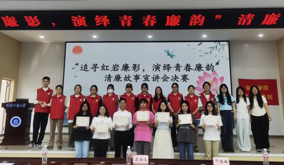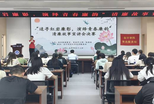 当前位置: 首页 >> 社区建设 >> 社区风采 >> 正文 从梁家河故事到红岩先烈事迹:ok138cn太阳集团清廉宣讲决赛引领青年厚植廉洁底色 时间:2025年04月21日 14:53 作者: 会计学院 为深化党团联动机制,激活“一站式”学生社区党建育人动能,引领青年学子厚植廉洁底色、共筑校园清风生态,2025年4月18日下午,校纪检监察室、党委学工部、校团委与会计学院红岩党员服务站于明德楼1019报告厅,联合举办“追寻红岩廉影,演绎青春廉韵”清廉故事宣讲会决赛。学校纪检监察室主任苏治远、校团委书记吴佑波、会计学院党委书记邓德敏、党委副书记郝颖,携7位参赛选手及会计学院80余名师生,共同参与这场“党建+廉洁”的育人实践。 本次清廉故事宣讲会竞赛分为初赛与决赛两轮。初赛于2025年3月18日正式启动,以线下宣讲的形式开展,共有17人参赛,最终7位同学凭借出色表现成功晋级决赛。决赛正式开始前,邓德敏书记发表活动致辞。他充分肯定了此次宣讲会的重要意义,强调要以本次活动为契机,将廉洁文化深度融入日常学习生活之中。 决赛现场,七位宣讲人以真实故事、生动语言阐释“清正廉洁”内涵:讲述习近平总书记梁家河知青岁月廉洁故事,学习其清廉为民品格;展现周恩来、董必武、彭德怀等老一辈无产阶级革命家以坚定信仰和无私奉献彰显的共产党人高尚品质与伟大情怀;重温江姐、陈然、刘国鋕等革命先烈在黑暗岁月中面对敌人威逼利诱,坚守党的秘密和信仰、以大无畏精神践行清廉与忠诚的事迹。决赛还特别设置了互动环节,现场气氛热烈。同学们踊跃参与知识问答,在思维的碰撞与观点的交流中,进一步深化了对廉洁文化的认知与理解,将抽象的廉洁理念转化为具体的行动指南。 与此同时,现场还播放了廉洁主题短片《致敬先辈的一封信》,通过鲜活的案例、动人的故事和震撼的画面,进一步增强了活动的感染力与影响力。经过激烈角逐,王良芳同学凭借出色表现斩获一等奖,曹馨月和周传炜同学荣获二等奖,曾善美、刘宇佳、韩郑镓呈和韩慧怡同学获得三等奖。他们的精彩宣讲,充分展现了对廉洁文化的深刻理解与生动诠释。 此次清廉故事宣讲会在热烈的掌声中圆满落幕。活动不仅搭建起廉洁文化传播的桥梁,更在每位参与者心中播撒下崇廉尚洁的种子,为营造清正廉洁的校园环境注入了强大的精神动力。 上一条:党建引领“会乐有约” 共筑育人发展新篇 下一条:健康集市进社区,青春赋能“一站式”——ok138cn太阳集团“健康集市”活动引领校园健康新风尚 【关闭】