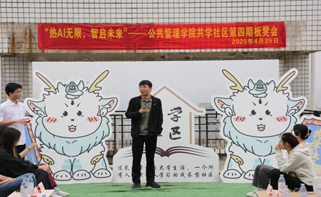 当前位置: 首页 >> 社区建设 >> 社区风采 >> 正文 “热AI无限,智启未来”——公共管理学院共学社区举办第四期板凳会 时间:2025年04月28日 08:53 作者: 公共管理学院 近日,习近平总书记在中共中央政治局第二十次集体学习时强调,要“坚持自立自强,突出应用导向,推动人工智能健康有序发展”。为构建AI赋能创新人才培养育人生态,4月25日下午,公共管理学院在“共学社区”举行“热AI无限,智启未来”第四期板凳会。活动邀请人工智能学院副院长范兴容、公共管理学院副院长王长征、学校大学生心理健康教育中心黄琳老师做客共学社区,与辅导员、青年学子代表齐聚一堂,通过“学术轻分享+圆桌思辨+AI趣味交互”的多元形式,共同探讨青年学生如何练好AI硬功夫,勇闯智能新天地。学院党委书记陆嘉参加活动。 本次活动旨在以“共学”方式让青年学子了解AI技术的前沿应用,激发与会学子科技创新的热情。活动以 “学术轻分享” 开启思想碰撞。黄琳展示了AI心理机器人在大学生心理健康领域的创新实践,感受科技赋能心理关怀的细腻触角;范兴容通过生动的案例,解读了AI技术的核心原理与发展趋势;王长征聚焦“AI与政府治理”融合实践,层层揭示数据如何赋能城市精细治理。 在“圆桌会议”环节,师生们围绕“AI在城市规划与数字城市治理中的应用”“AI时代高校教育的变革剖析”“AI时代大学生核心能力塑造”“城市规划助力AI的可持续发展”四大议题,以跨学科视角展开深度对话,碰撞思想火花。师生在观点交锋中逐渐明晰:在智能浪潮奔涌的时代,唯有以技术创新为引擎、以人文价值为罗盘,方能绘制出青年成长与社会发展的共赢蓝图。 活动特别设置“成语猜猜猜”互动环节,通过AI生成的“画蛇添足”“叶公好龙”等抽象化成语图像,让师生直观感受AI的创意逻辑。师生们根据AI生成的图片进行抢答,在解读的细节中感受AI与传统文化结合的独特魅力。 陆嘉指出,当前,人工智能这一战略性技术正在引领新一轮科技革命和产业变革,也在改变着我们的生产和生活方式,它带来前所未有发展机遇,也带来前所未遇风险挑战。本期板凳会以AI为切口,通过“学术性与趣味性结合、技术性与人文性融合”的方式,引导同学们明白AI技术突破的价值,最终要落在一个“用”字上。希望同学们努力掌握人工智能领域的知识,用AI赋能专业学习,厚植自立自强的“志气”、应用导向的“地气”,成长为兼具“技术敏感度”“专业素养力”与“社会责任感”的复合型人才。她强调,学院高度重视“一站式” 学生社区建设,将聚力把“共学社区”打造为同学们的“温暖家园”,思想交锋、专业发展的“学习园地”和能力孵化、职业发展的“成长场域”。 作为学院"一站式"学生社区建设的品牌活动,"板凳会"已持续举办四期,累计覆盖师生近500人次。未来,学院将继续依托“板凳会”“共学社区接待日”等品牌活动,持续深化"科技+人文"双螺旋育人模式,以"场景化育人"新范式推动价值引领具象化。让学生在沉浸式体验中深化对 “科技向善” 的认知,为智能时代的社会治理储备兼具创新思维与人文温度的青年力量。 上一条:公共管理学院“一站式”学生社区建设宣传片 下一条:以球会友展风采,携手联动筑同心 机械工程学院举办“一站式”学生社区体育联谊活动 【关闭】