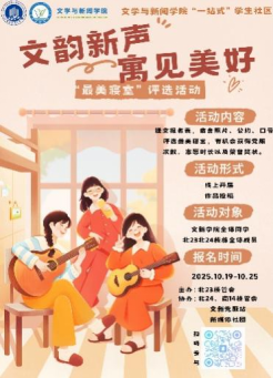 当前位置: 首页 >> 社区建设 >> 社区风采 >> 正文 文韵润舍凝共识 创意筑家暖人心——文学与新闻学院“一站式”学生社区“最美寝室”评选活动圆满落幕 时间:2025年11月02日 10:47 作者: 文学与新闻学院 一方寝室,是学子们校园生活的温馨港湾。为提升学生自我管理与服务意识,11月1日,由文学与新闻学院北23楼管会主办的“最美寝室”评选活动圆满结束。此活动以“文韵新声,寓见美好”为主题,鼓励各寝室打造整洁有序的居住环境,倡导同学们深度挖掘寝室独特文化内涵,打造专属风格的寝室文化,让每一间寝室都能成为展现个性、传递温暖的“小家”。 从前期多维度宣传动员,到后期评选结果落地,活动全程有序推进,不仅涌现出一批兼具整洁风貌与文化特色的优秀寝室,更让“创意共筑最美家”的理念深入各位同学心中。此次活动共吸引了31个寝室,共112位同学参与,同学们提交的作品中,既有整理得井井有条的内务环境照片,也有展现共同制定的寝室公约和口号,充分展现了同学们的巧思与凝聚力。 在参评寝室中,不少寝室将文化艺术融入布置。有的寝室以手写字画装点墙面,或清新雅致,或古朴大气,尽显人文底蕴;有的则以蝴蝶元素打造“蝶梦空间”,斑斓的蝴蝶装饰似在墙面翩跹,为寝室增添灵动诗意。还有的寝室将洗漱空间、生活区域打理得干净明亮,一尘不染。在这里,室友们共度朝暮,分享喜乐,让寝室成为了远在他乡的第二个家。 此次“最美寝室”评选活动不仅是文学与新闻学院推进“一站式”学生社区建设的重要举措,更是丰富学生校园文化生活、培育优良学风校风的生动实践。未来,愿更多寝室能在这片小天地里,继续书写属于青春的美好篇章,学院将继续以“一站式”学生社区为依托,开展更多形式多样、内容丰富的文化活动,不断提升学生社区的育人功能,助力学生全面发展。 上一条:以青春立约 以温情筑家——文学与新闻学院“一站式”学生社区立约计划墙活动人气高涨显社区育人活力 下一条:环境与资源学院开展“以劳建心,共创家园”劳动实践活动 【关闭】